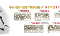 “5個嚴禁”“17”個不準”和“5個一律” “5個嚴禁”:  嚴禁拉票賄選、嚴禁買官賣官、嚴禁跑官要官、嚴禁違規(guī)用人、嚴禁干擾換屆“17個不準”:  1、不準在民主推薦、民主測評、組織考察和選舉中搞拉票等非組織活動,通過宴請、安排消費活動、打電話、發(fā)短信、當面拜訪、委托或者授意中間人出面說情、舉辦聯(lián)誼活動等形
