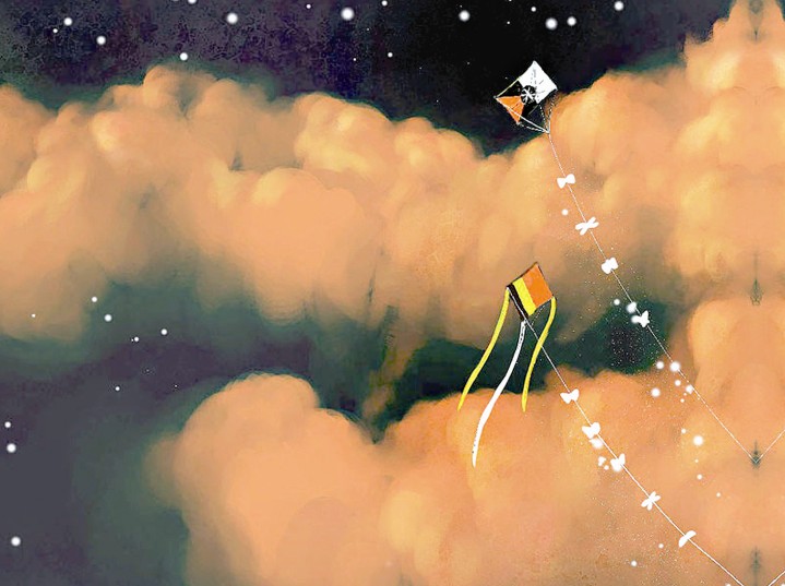 小囡囡就這么仰望著那個高掛在天上的風(fēng)箏,她也不去追,不去搶。因為看著風(fēng)箏還在天上,心里就還有夢。如果把它拿在手上,可能,她就再也不會做夢了?! ?