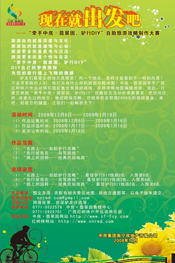 現(xiàn)在,只要您根據(jù)“牽手中房·翡翠園,驢行DIY”攻略征文活動(dòng)的參賽要求,把您向往的、或者去過的地方,做成路線攻略,您就有機(jī)會(huì)獲取2000元的現(xiàn)金大獎(jiǎng)。來吧,輕敲您的鍵盤,讓我們一起暢游天下!