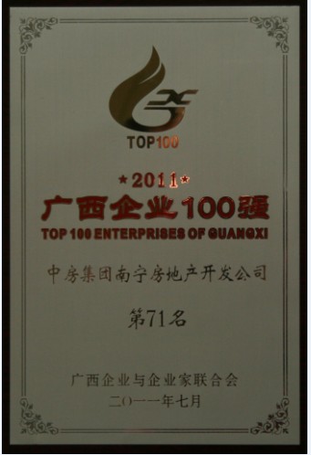 728,廣西企業(yè)與企業(yè)家聯(lián)合會在桂林發(fā)布了2011年廣西100強(qiáng)企業(yè)名單,中房集團(tuán)南寧房地產(chǎn)開發(fā)公司榮登2011廣西企業(yè)百強(qiáng)榜,名列第71位。